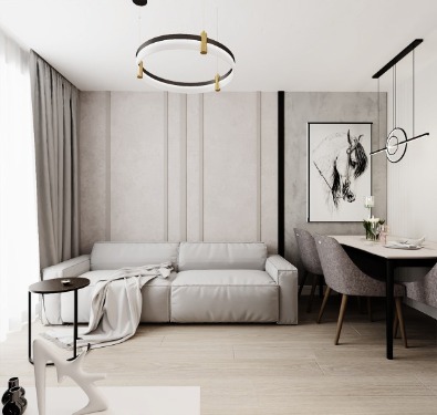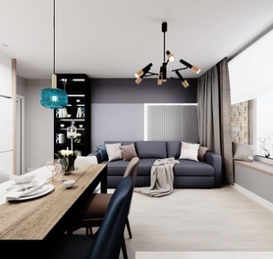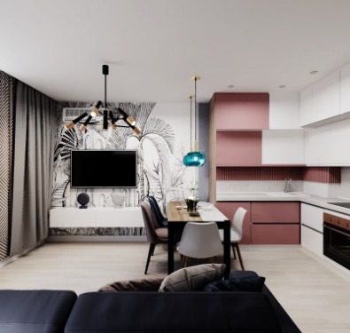 Дизайн кухни с гостиной для молодой пары, 18 м2